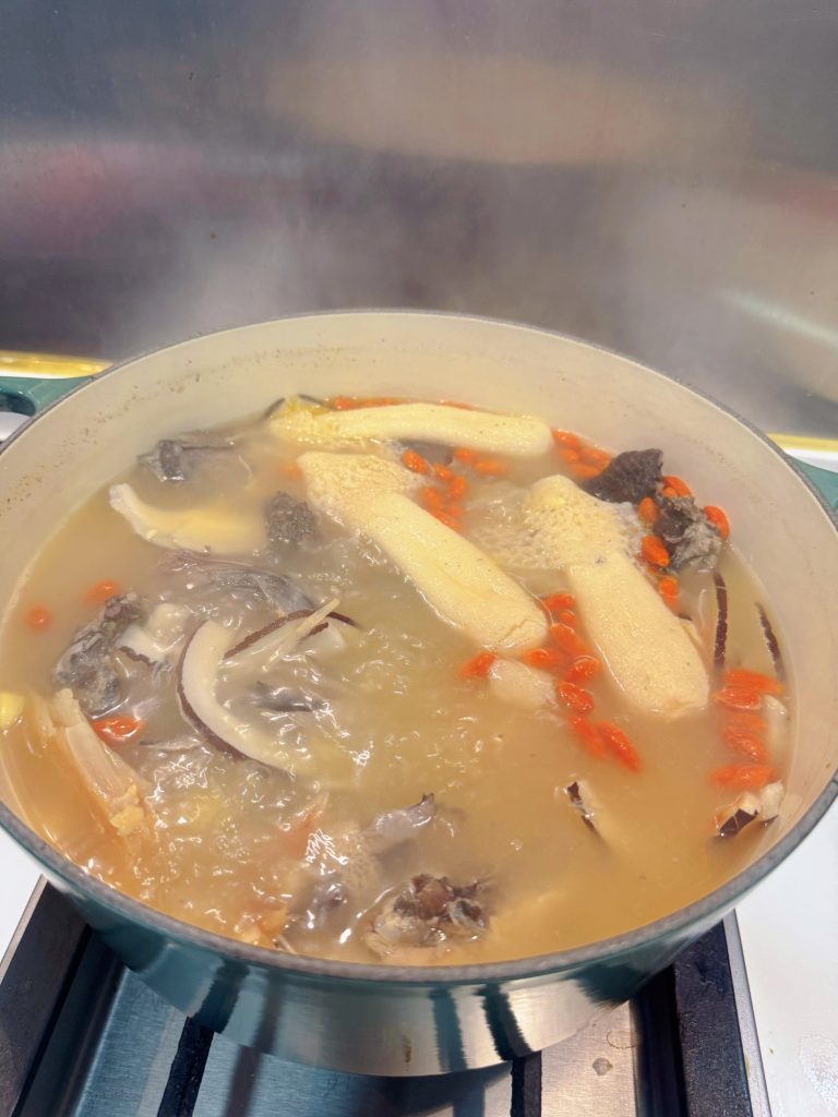 12月考試嘅季節想俾小朋友一啲營養補充,小朋友喜歡喝雞湯,喜歡雞湯嘅鮮甜味,就買來一隻雪鳳凰啦!雪鳳凰其實係泰安雞旗下嘅黑雞,即日鮮劏,剝咗皮用嚟煲湯鮮甜好味,雞肉撕開一絲絲,放埋落湯度一齊食,滋補。今次呢個湯加咗印度椰子同埋蒲魚翅落去煲,聞落去濃濃嘅椰子味,但係飲落去淡淡嘅甜味。大人小朋友都喜歡嘅湯。
