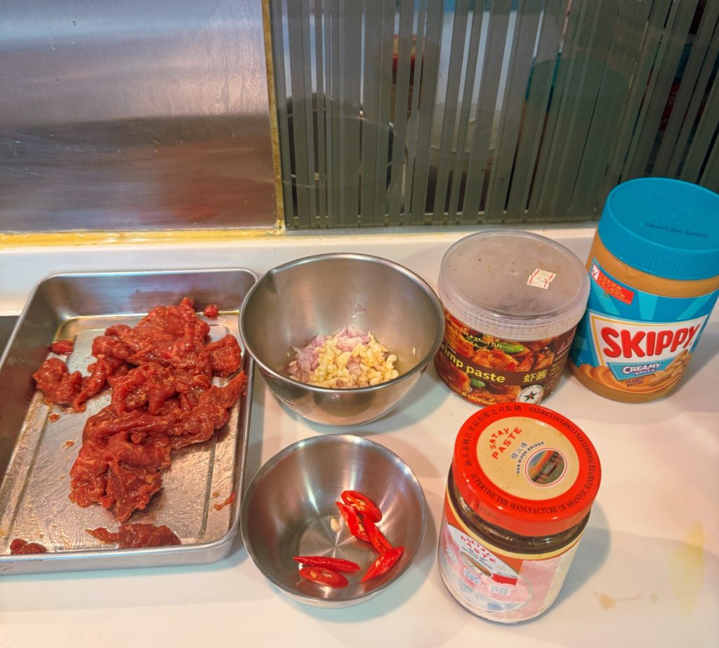 突然好想食!就買啲新鮮嘅牛肉嚟整啦,喺屋企自己整嘅沙嗲牛肉可以辣啲、可以多啲花生醬味、自己話事😏
